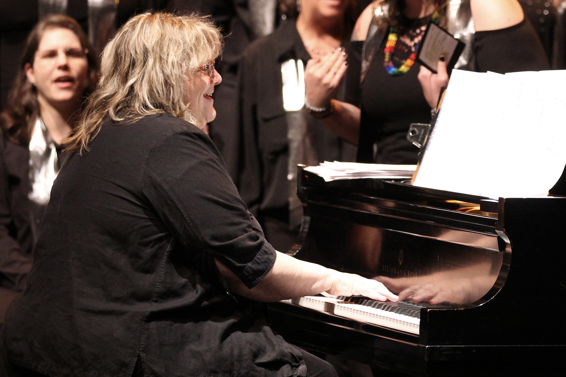 When Dr. Lisa Hellemn came to Eugene in 1990, she saw a Soromundi performance at a local event — and was an instant fan. She offered her services as an accompanist and eventually became the Musical Director. Lisa’s extensive background in music, music education, special education, and educational leadership has been critical to Soromundi’s longevity and growth, given that there are no auditions and many in the chorus have no musical background — except a love of singing. Lisa’s commitment to supporting each singer and helping them find success, just as she supported all the students and teachers who she encountered, accounts for the lengthy tenure of so many in the chorus.