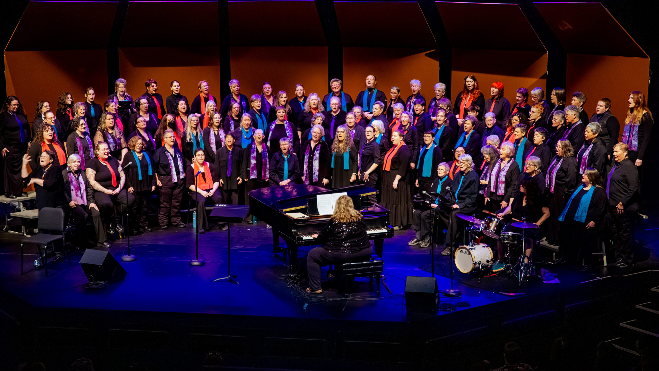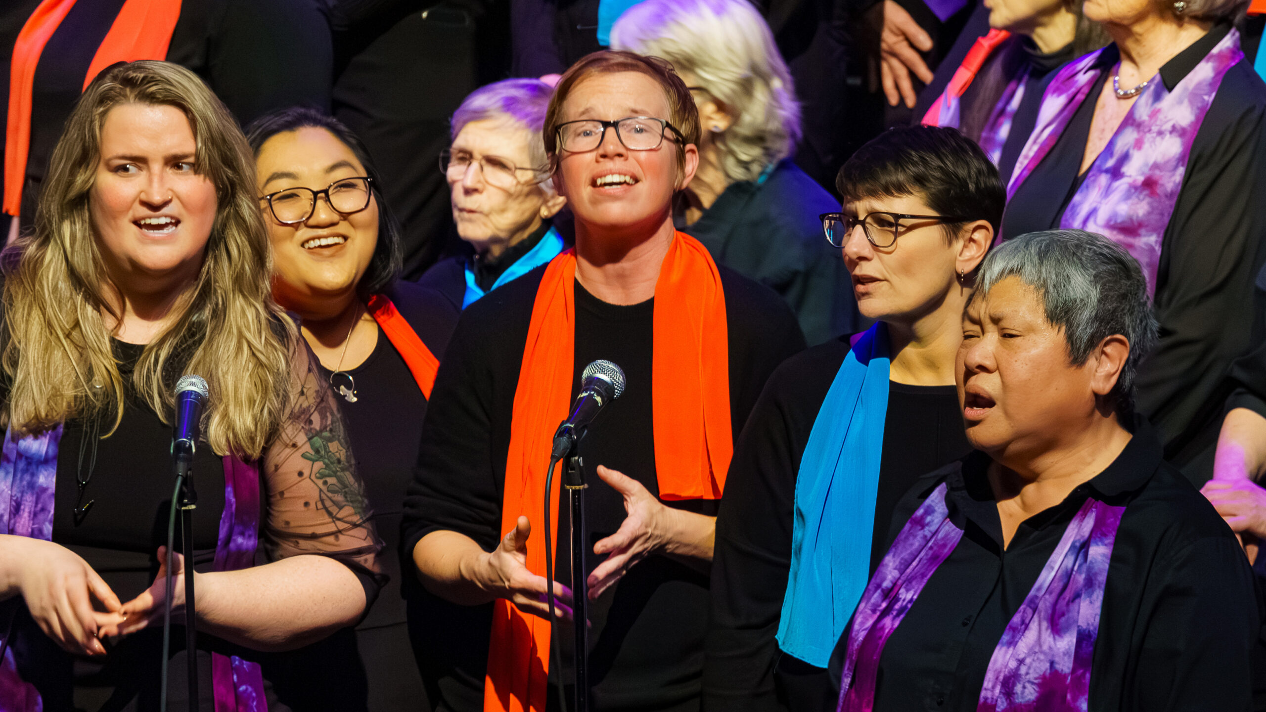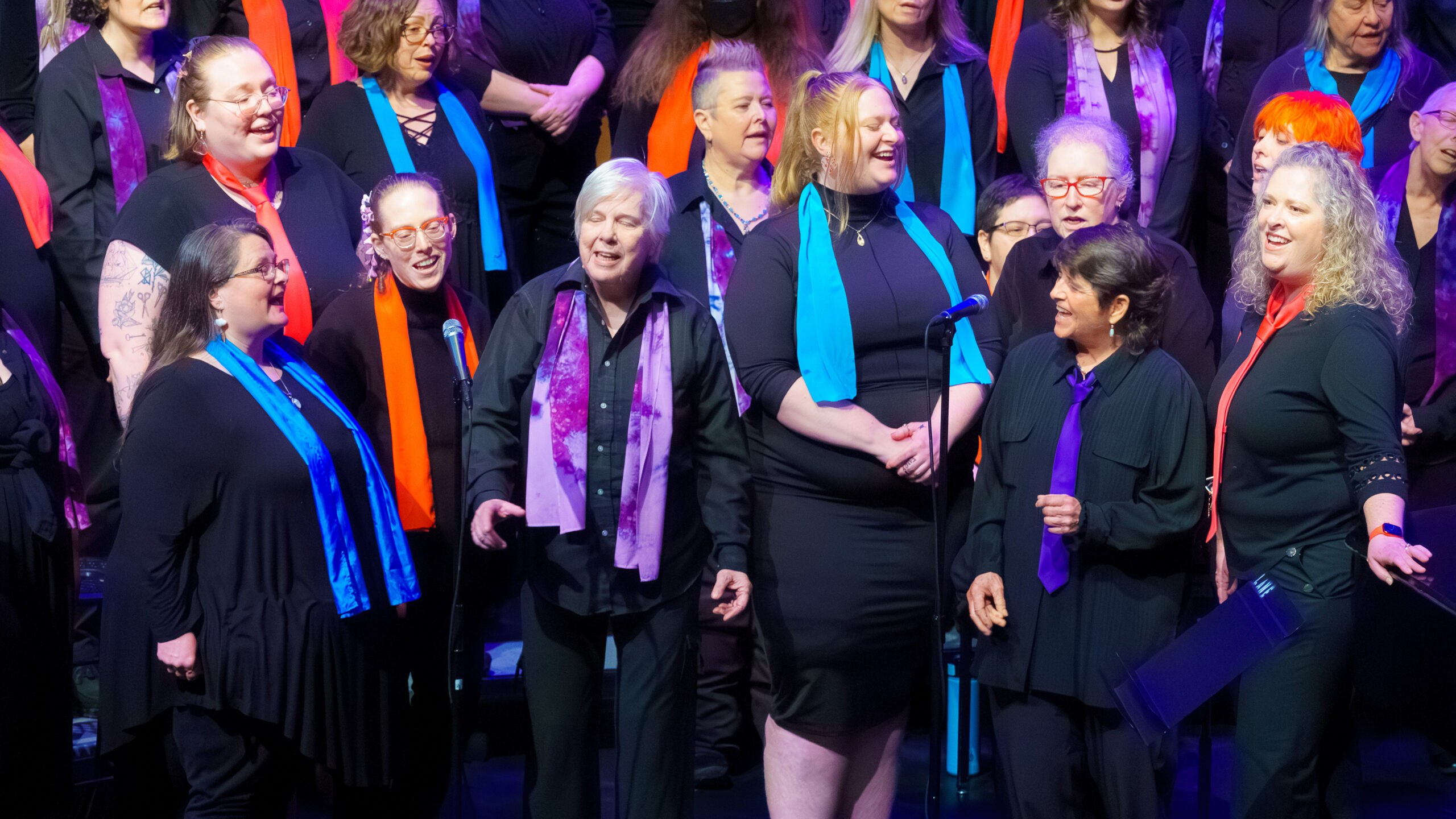 Chorus membership is open to anyone over 18 who identifies as a woman. We welcome members of all orientations, races, ethnicities, abilities, economic statuses, and religions. We embrace a broad definition for self-identified women which includes lesbian, straight, bisexual, cisgender, transgender, and intersex women, individuals with non-binary gender identities, and gender expansive individuals who find home within women’s spaces. This can include gender non-conforming, agender, two-spirit, butch, femme, and many other identities. We intend this membership definition to be as inclusive as possible while honoring and reaffirming our history and identity as Soromundi Lesbian Chorus of Eugene.